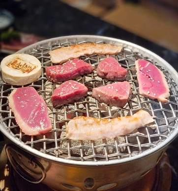 - 油脂豐富的肉(牛五花、豚五花)放後面烤。