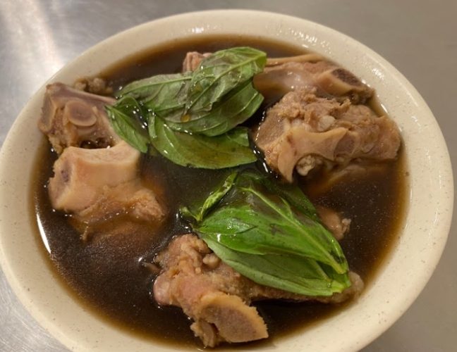 - 介紹: 天氣轉涼時,這攤總會飄出誘人的中藥香。一個大鍋裡滾沸著深褐色的藥燉湯頭,裡面是燉煮到軟爛的豬肋骨。湯頭溫潤順口,中藥材(常見當歸、川芎、枸杞、紅棗等)的香氣濃鬱但不刺鼻,喝起來甘甜滋補。排骨肉燉得軟嫩,輕輕一咬就骨肉分離。可以單點藥燉排骨湯,也有搭配麵線的組合(藥燉排骨麵線), 冷冷的天來一碗,從胃暖到心裡。老闆用料實在,生意很好,有時太晚來就賣光了。去年冬天感冒沒胃口,特地跑來喝上一碗,感覺元氣都回來了點。