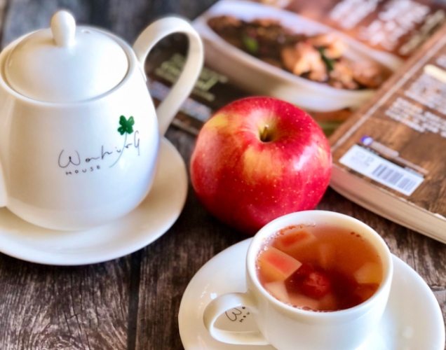 - 蘋果橙香茶: 煮蘋果時,加幾片新鮮柳橙皮(只要黃色部分,白色會苦)或擠一點柳橙汁,增加柑橘香氣。